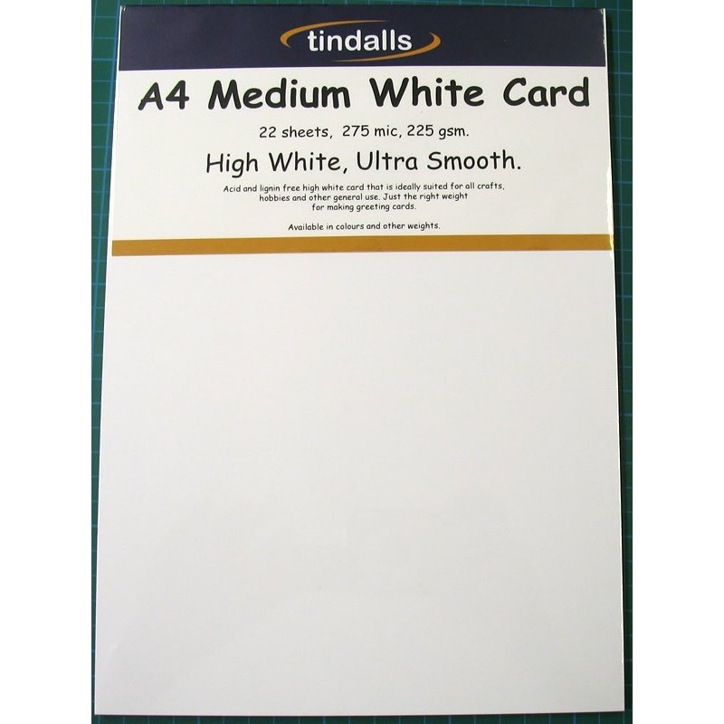 22 sheets of A4, 275 micron, 225 gsm, high white, ultra smooth card. Acid and lignin free high white card that is suited for all crafts, hobbies and other general use. Just the right weight for making greeting cards.